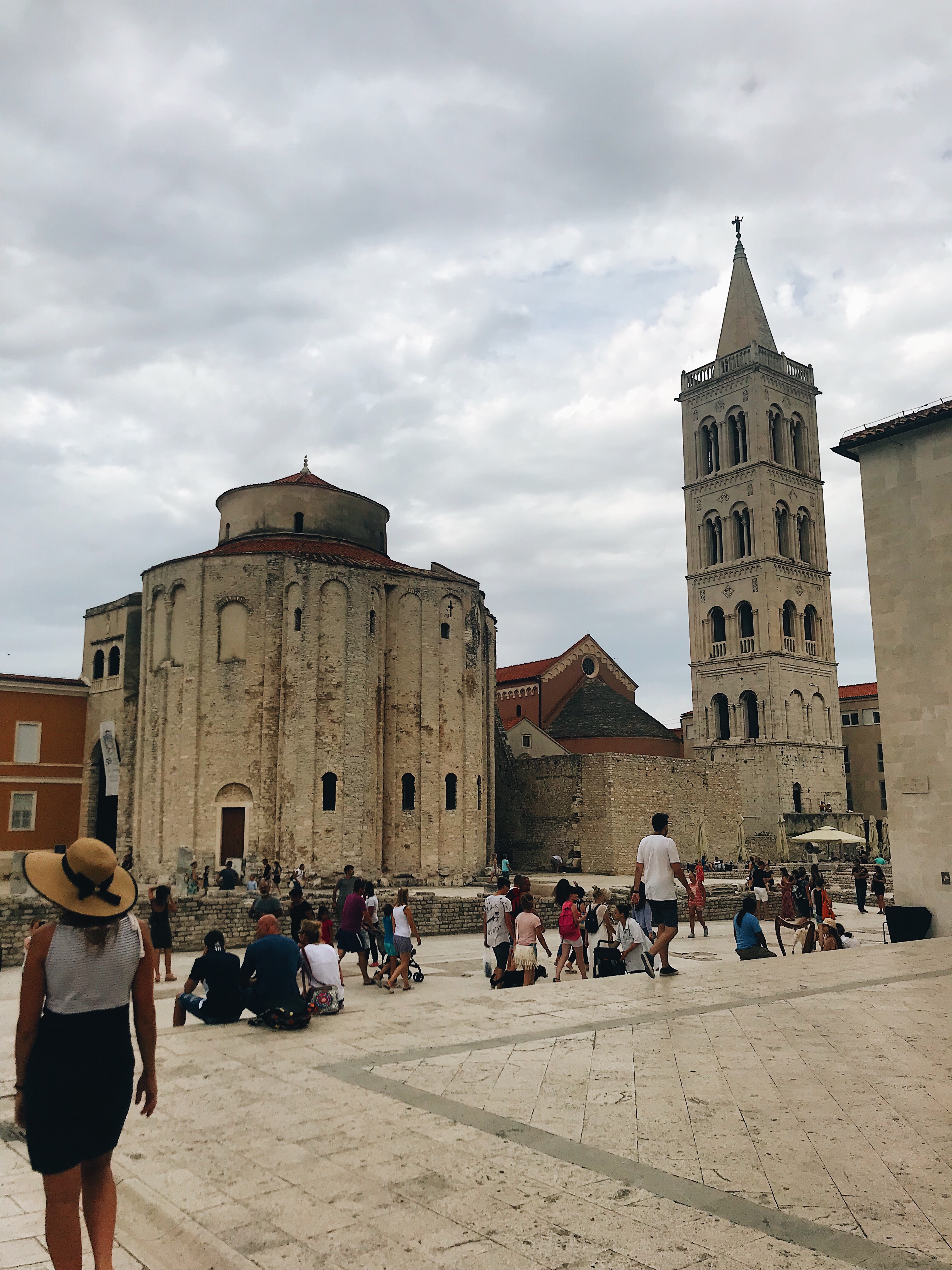 It’s my fault, I didn’t do my research. I saw that tiny little sun icon on Google Weather and I trusted it with all my heart. But when we finally disembarked, the weather in Zadar was overcast instead of blazingly hot like the forecast said. At first I wanted to tear my hair out. I had passed those five long hours on a bus daydreaming of a sunny beach day that would make it all worth it. But once I let go of my expectations I realized the clouds were a blessing (I guess the whole cloud was a silver lining, heh heh). Not only was it more than warm enough to swim (although nothing could have gotten me to jump off of the high dive), I think that the clouds discouraged droves of tourists from descending on the beach and city. We still had to squeeze for space here and there, but a lot of Old Town was less crowded than I expected.